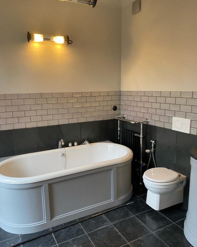 Moją sugestią jest także przemyślane kładzenie płytek – nie trzeba kłaść ich do pełnej wysokości ścian. Wystarczy położenie ich np. do wysokości drzwi w strefie prysznica oraz do np. wysokości geberitu w pozostałej części pomieszczenia.